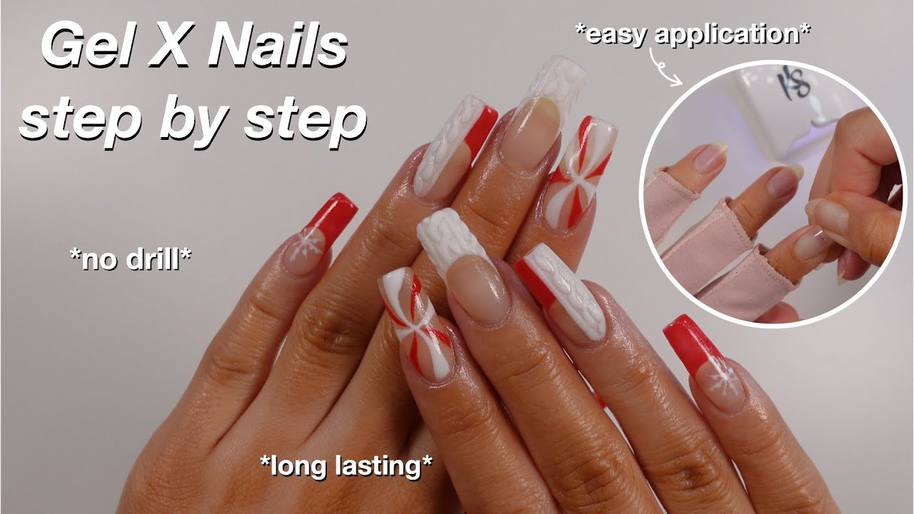 Gel X Nails step by step guide *no drill* Xmas nail inspo πŸŽ„πŸ’«