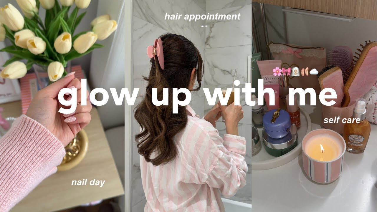 glow up with me๐Ÿซงโœจ: new nails, hair day, self care tips