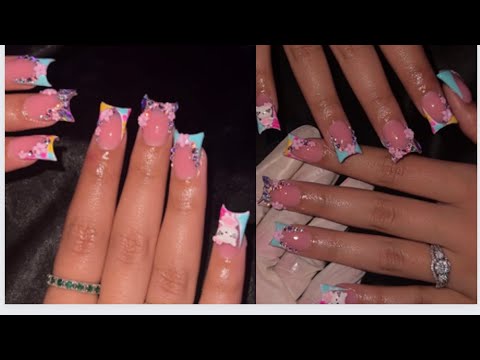 HOW TO DO DUCK NAILS | SPRING FREESTYLE NAILS | ACRYLIC NAILS TUTORIAL๐ŸŒˆ๐Ÿ’˜